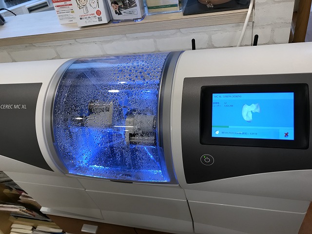 型取り不要で、スキャニングによって得られたデータをもとに、白い詰め物を自動設計・作製する装置です。